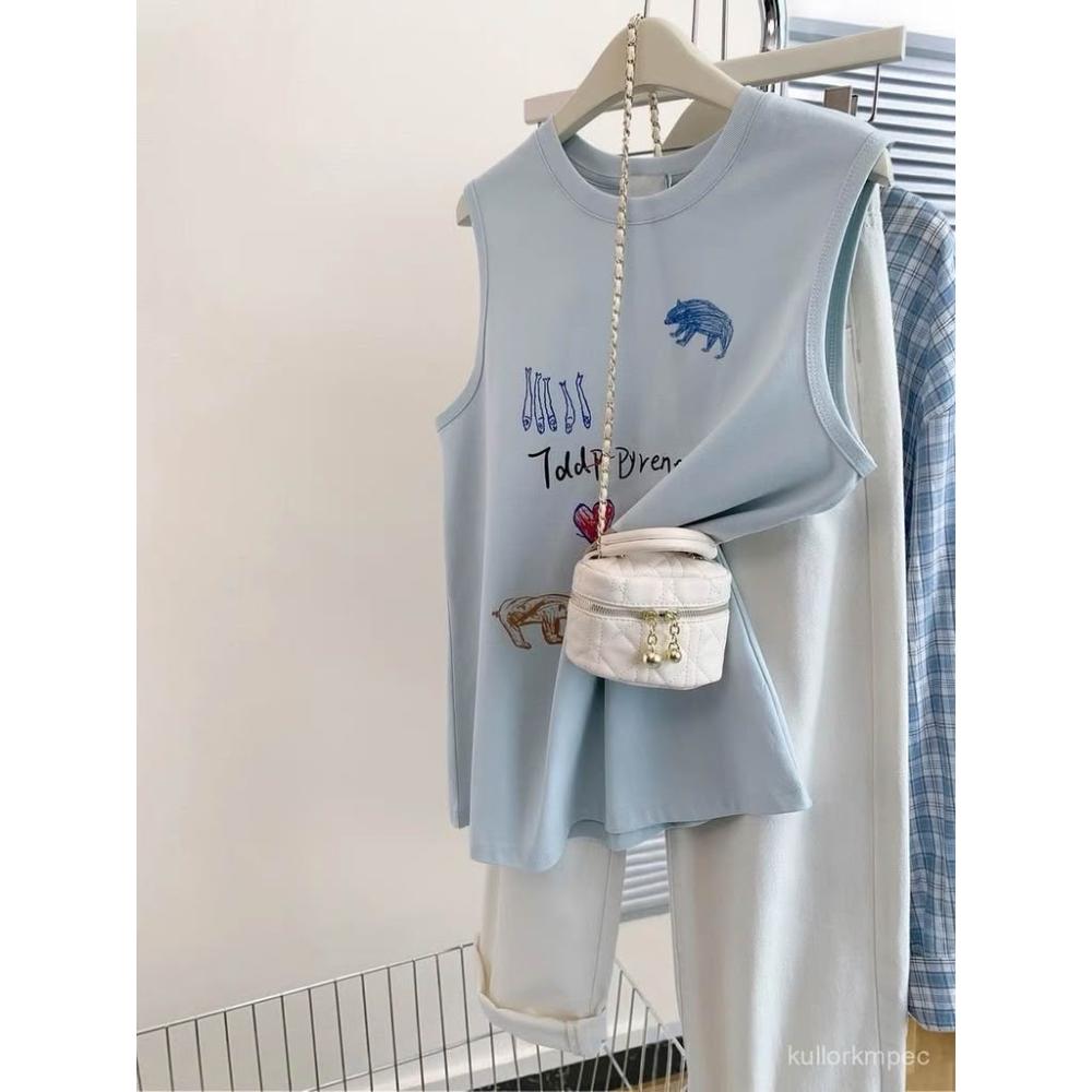 浩浩甄選 純棉印花吊帶背心女裝2025新款夏外穿內搭打底寬鬆無袖上衣大碼