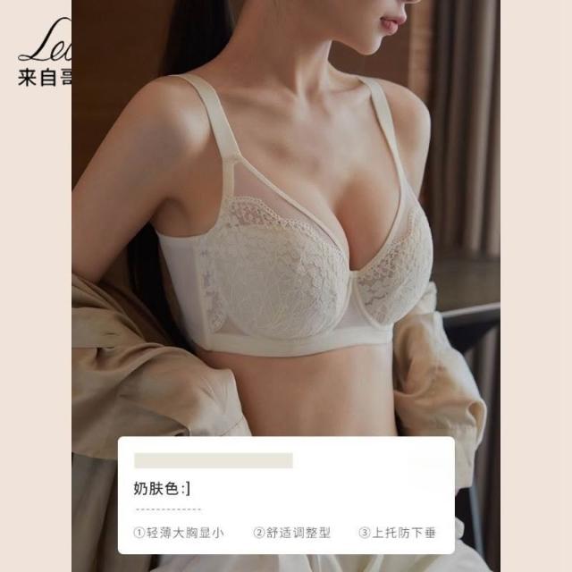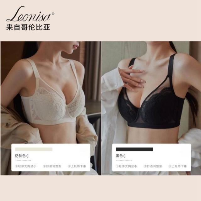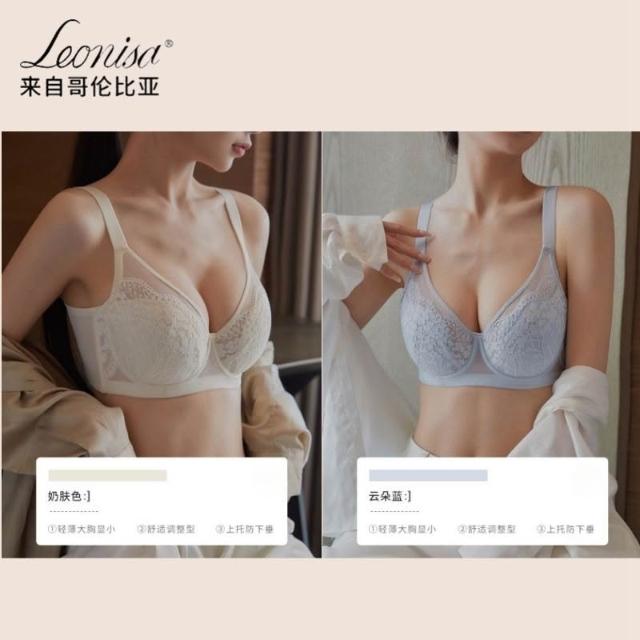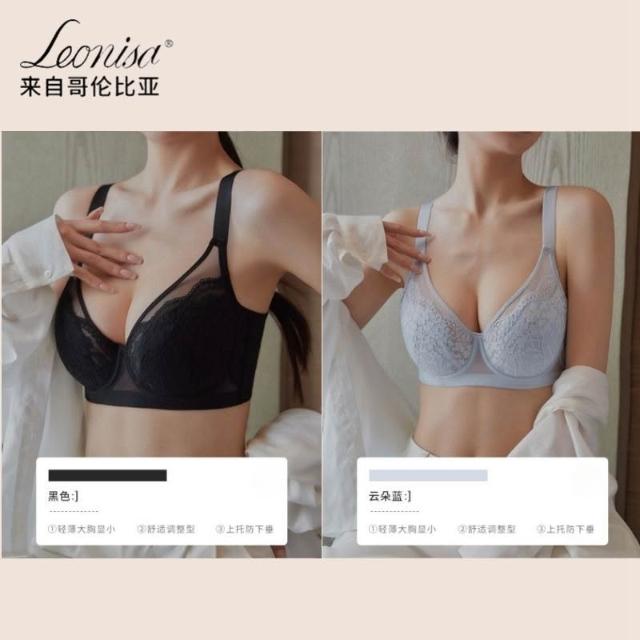 Leonisa內衣女薄款大胸顯小性感蕾絲大碼文胸聚攏上託胸罩夏季薄