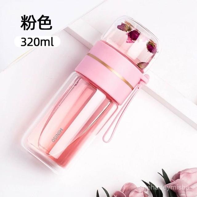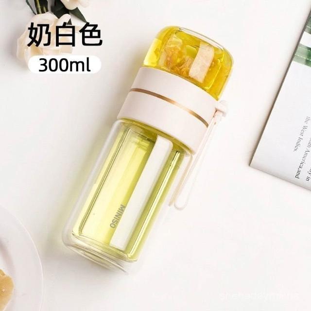 君選 MINISO名創優品雙層玻璃杯戶外便攜茶水分離泡茶耐高溫高顔值水杯