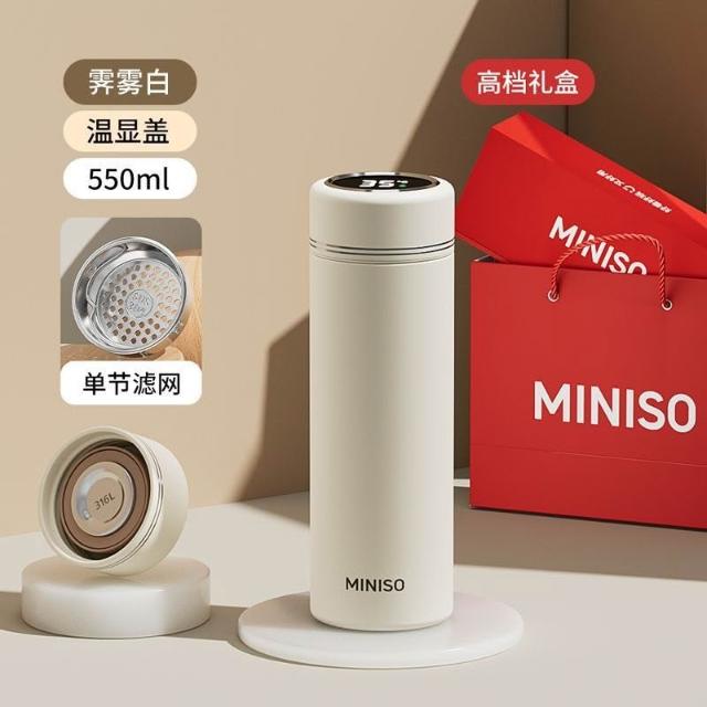 君選 名創優品大容量保溫杯女316L不銹鋼泡茶杯子商務便攜學生智能水杯