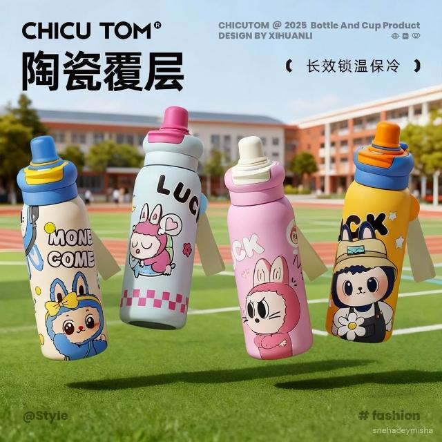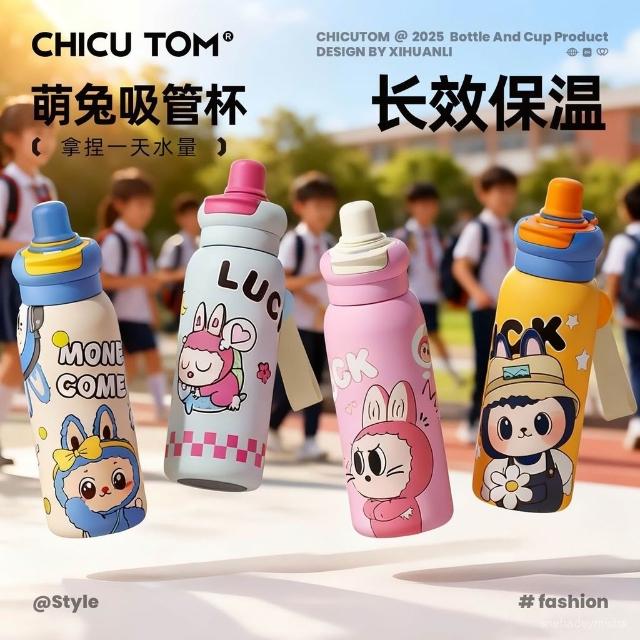 君君優選 奇古堂兒童保溫杯上學專用大容量食品級吸管杯子便攜雙飲學生水杯