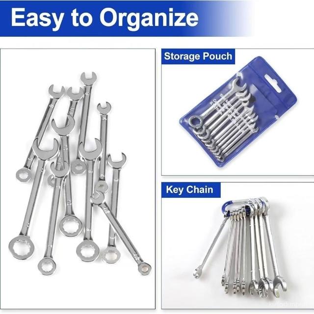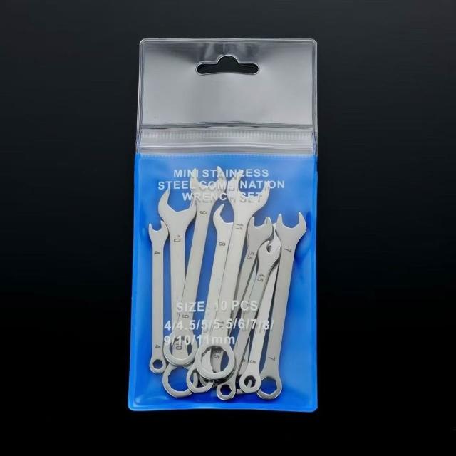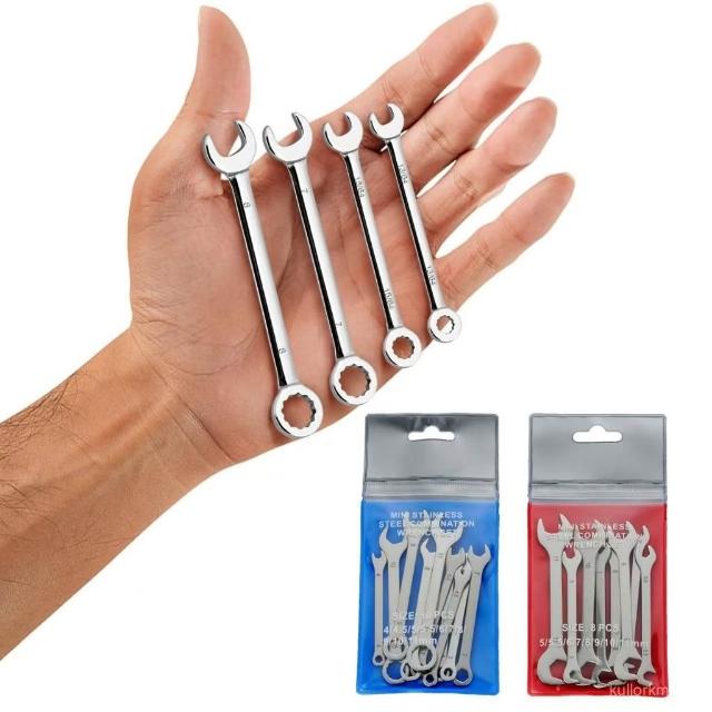 小號迷你公製英製扳手件套10套裝梅花開口兩用螺母汽修工具鏡麵