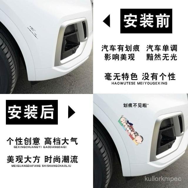 汽車長條劃痕遮擋遮蓋可愛創意蠟筆小新車身保險槓電動車防水貼畵