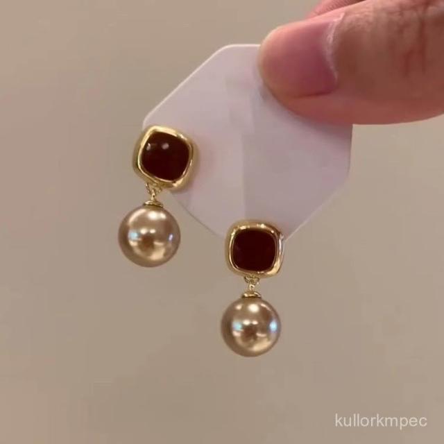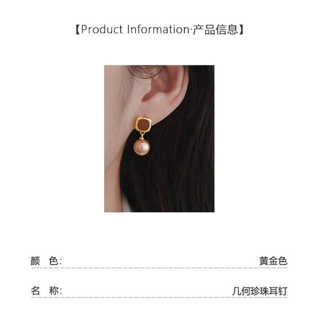 輕奢美拉德香檳色珍珠耳釘女時尚氣質感耳環小衆個性設計感耳飾品