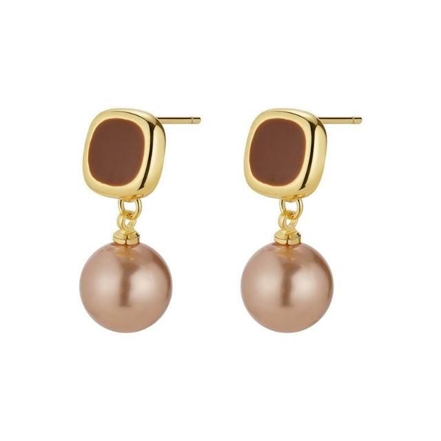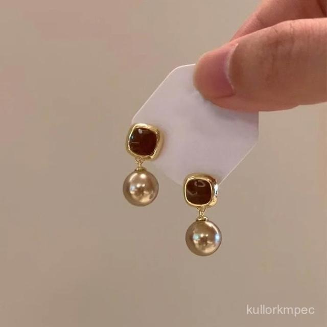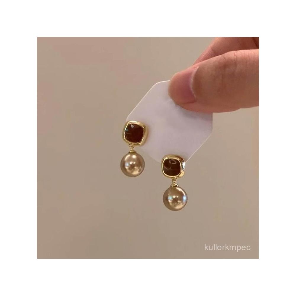 輕奢美拉德香檳色珍珠耳釘女時尚氣質感耳環小衆個性設計感耳飾品
