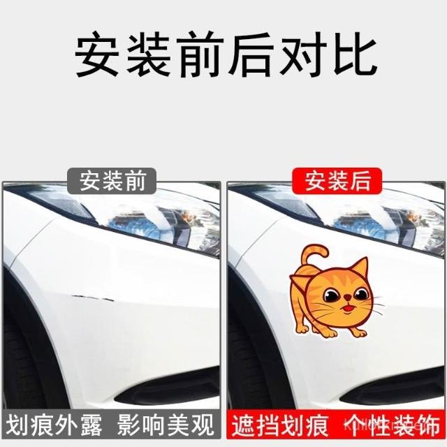 卓貼 車貼遮擋劃痕側麵卡通可愛貓咪前保險槓遮蓋颳痕汽車貼紙