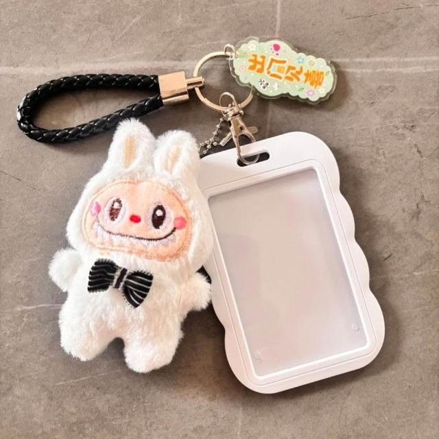 拉布布可愛學生花邊滑蓋卡套飯卡公交卡身份證保護套門禁校園卡套