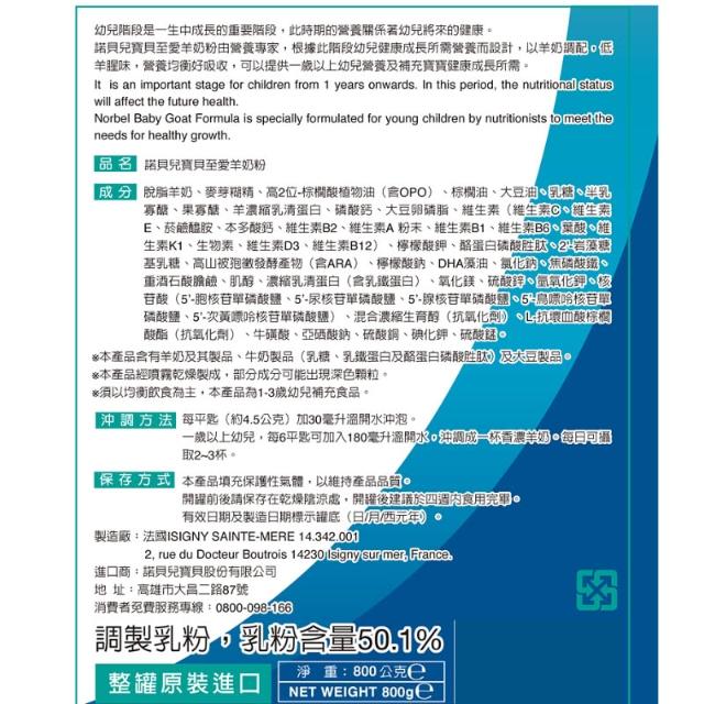 諾貝兒寶貝至愛羊奶粉800Gx3罐(丁丁藥局)