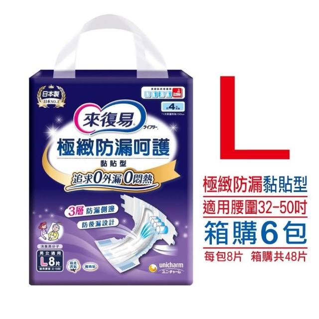來復易極緻防漏黏貼型紙尿褲6包箱購箱購M/L/XL(丁丁藥局)