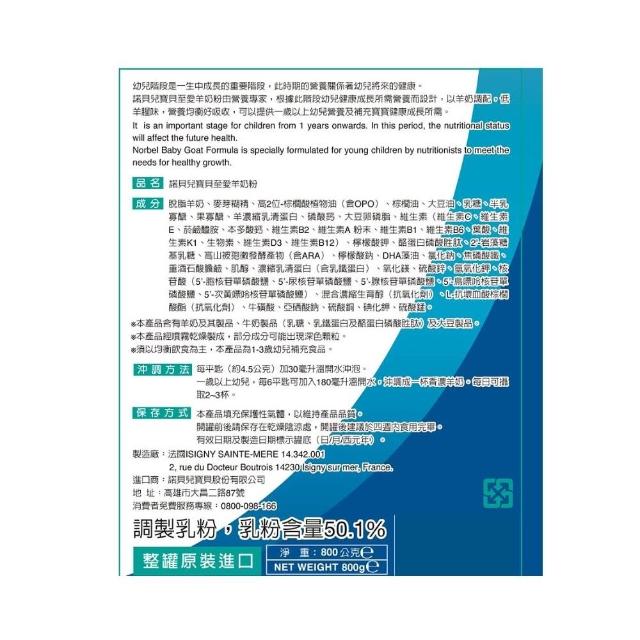諾貝兒寶貝至愛羊奶粉800G(丁丁藥局)