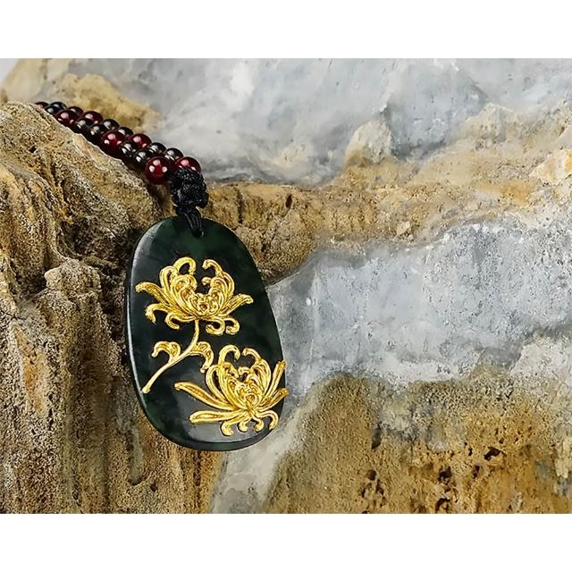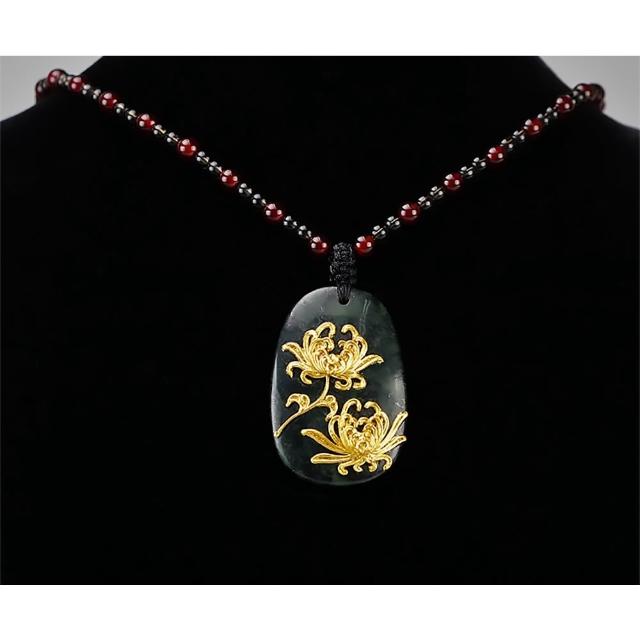 鹿港窯漆線雕 墨玉項鍊 富貴 尊榮首選