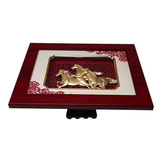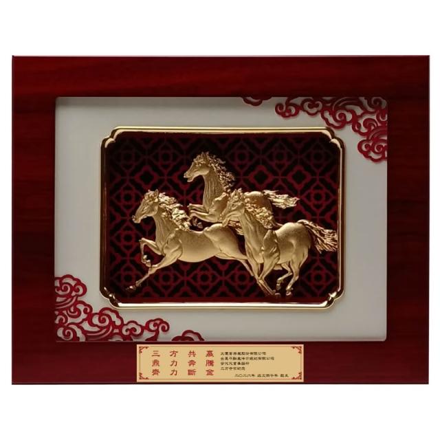 鹿港窯三駿開泰金箔畫|奔騰萬里・企業高雅送禮・客製題字祝福