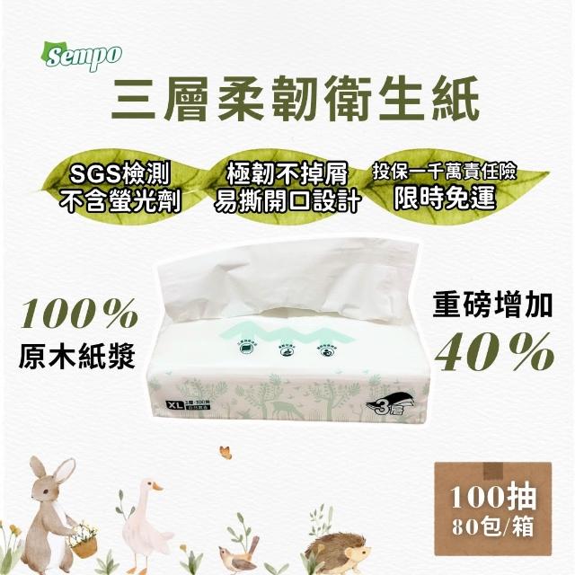 限時下殺快速出貨🔥Sempo超韌不掉屑衛生紙 100抽x8包x10串 三層抽取式 厚磅 母嬰適用 可沖入馬桶
