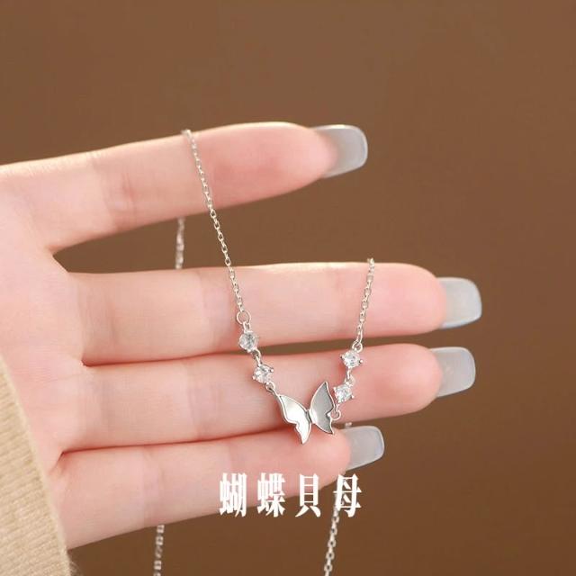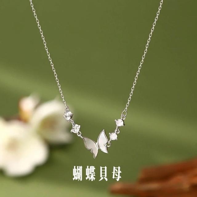 蝴蝶貝母純銀項錬 S999足銀配高品質鋯石 不易過敏 原創設計 銀飾 項錬 項鏈 生日禮物 禮物 送女朋友 送媽媽