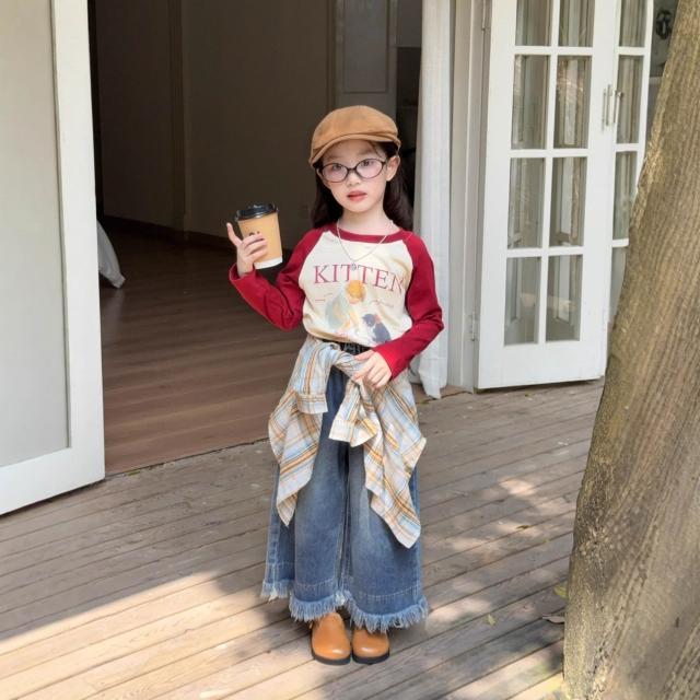 Bebe 愛寶貝女童長袖T恤 2025新款 秋季 長袖上衣 女童上衣 T恤 時尚百搭