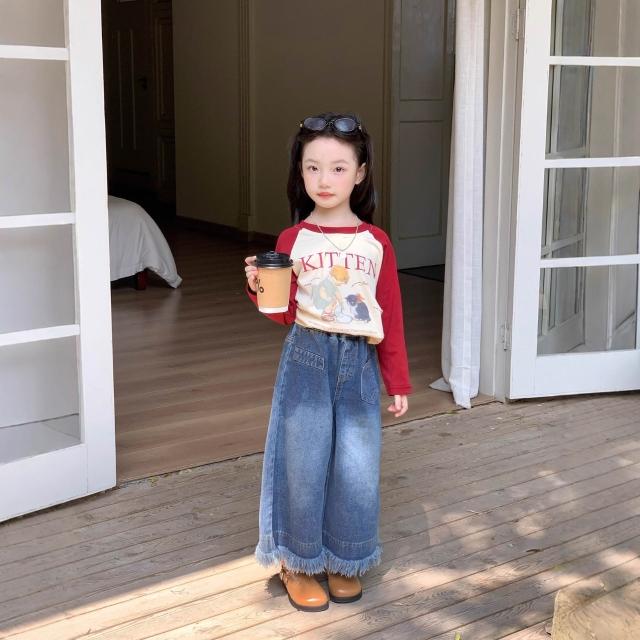 Bebe 愛寶貝女童長袖T恤 2025新款 秋季 長袖上衣 女童上衣 T恤 時尚百搭