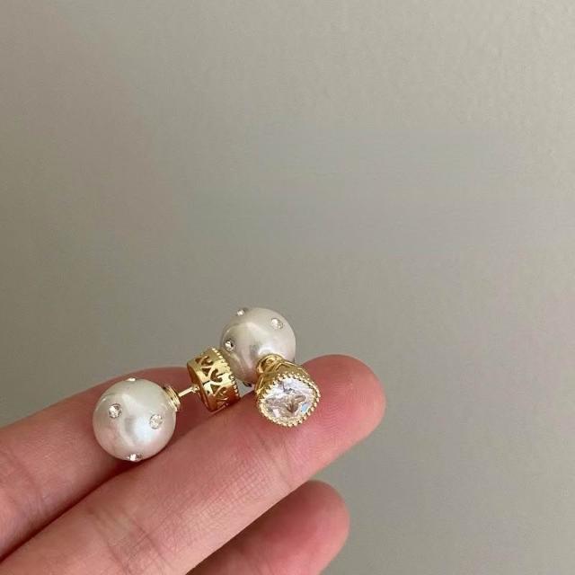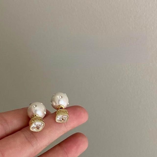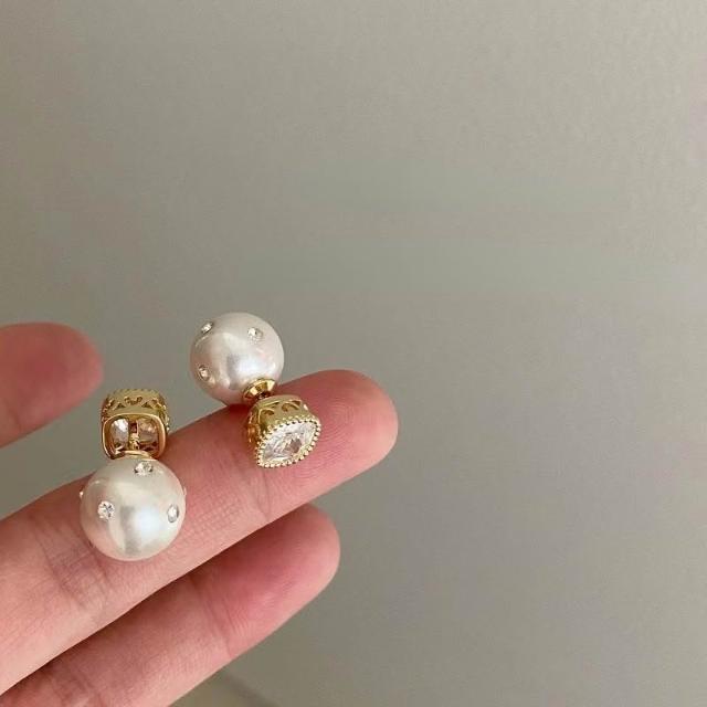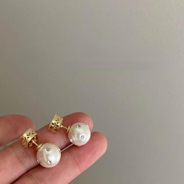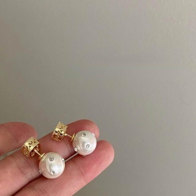 滿188出貨 大珍珠鑲鑽耳環 鋯石耳環 珍珠耳釘 耳針 耳飾 耳扣 飾品 高級百搭 上班通勤 韓國飾品 生日禮物 送朋友