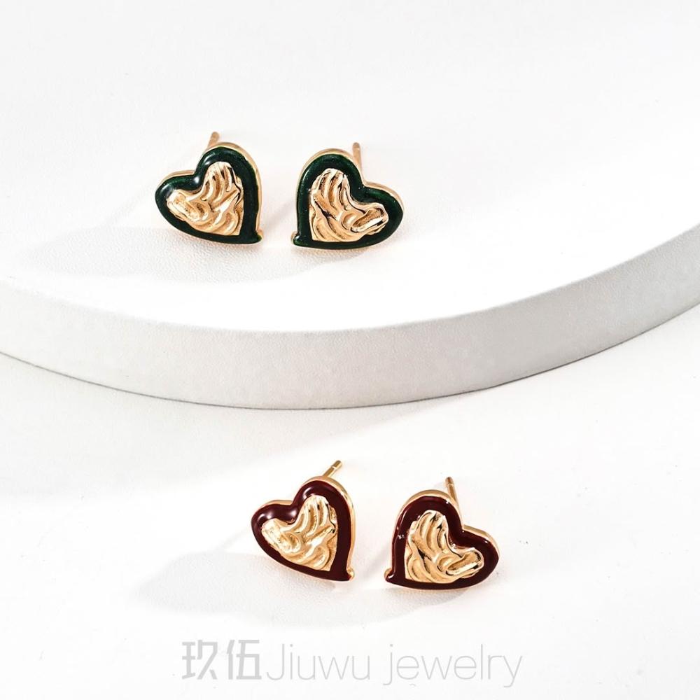 心瑞系列925純銀耳釘 紅色綠色兩色可選 愛心耳釘 原創設計 不過敏 日常百搭 母親節禮物 生日禮物 送閨蜜送女朋友