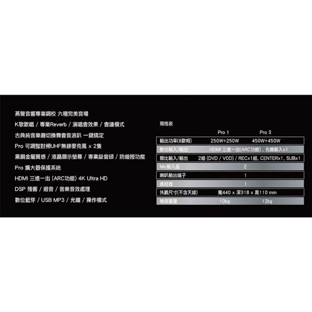 ENSING 燕聲擴大機 燕聲 ENSING Pro3 觸控多功能數位擴大機 內建無線麥克風 六組模擬音場 HDMI輸入藍芽/音響設備
