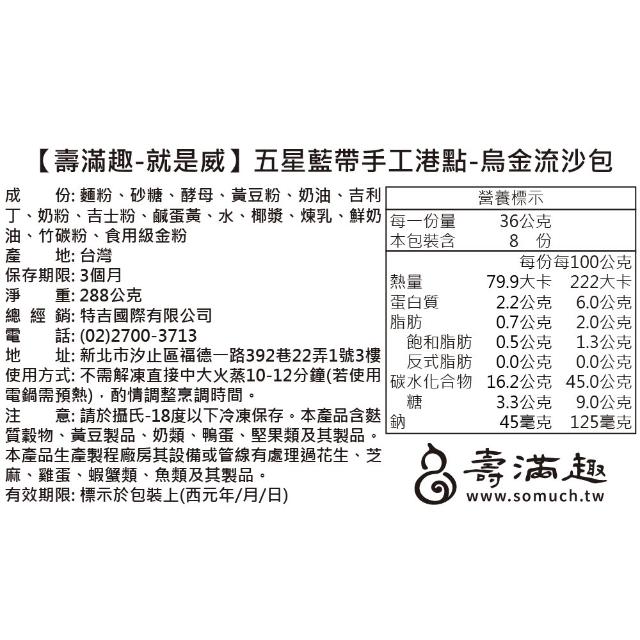 壽滿趣五星藍帶手工港點-烏金流沙包(8入/盒)