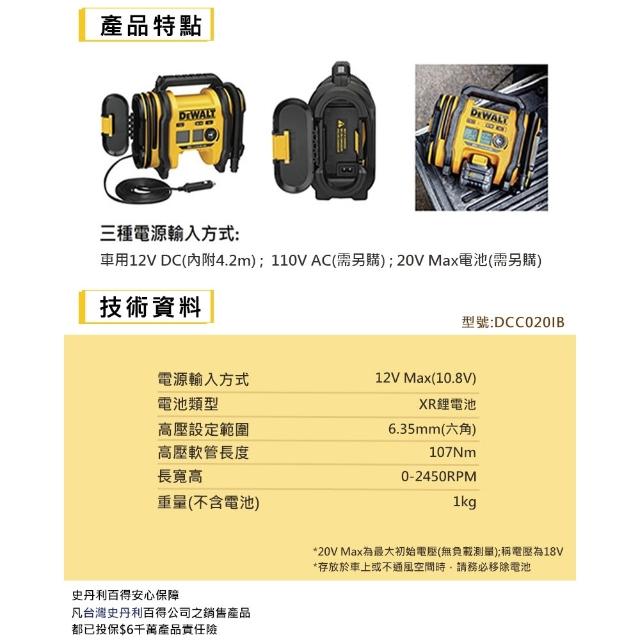 DEWALT 得偉南慶五金 公司貨 含稅 德偉 得偉 DEWALT 20V Max AC/DC打氣機DCC020IB 救車
