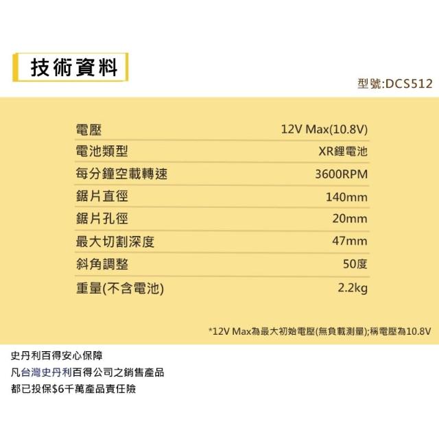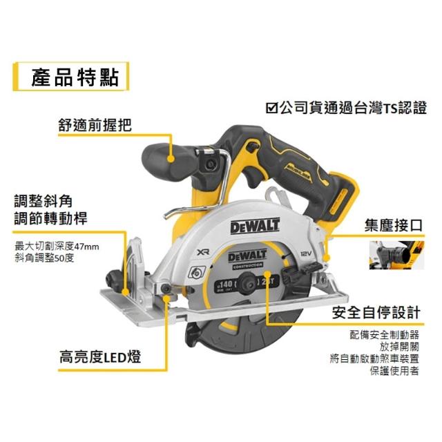 DEWALT 得偉南慶五金 公司貨 含稅 德偉 得偉 DEWALT 12V 無碳刷圓鋸機 DCS512NT無碳刷圓鋸機 木工 切木頭