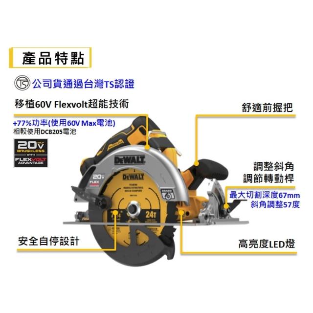 DEWALT 得偉南慶五金 公司貨 含稅 德偉 得偉 DEWALT 20V 無碳刷FVA圓鋸機190mm DCS573 木工圓鋸 板模