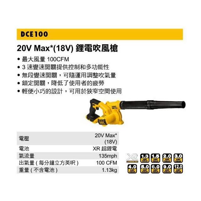 DEWALT 得偉南慶五金 公司貨 含稅 德偉 得偉 DEWALT 20V Max*18V鋰電吹風槍 DCE100 吹塵 清潔 植筋