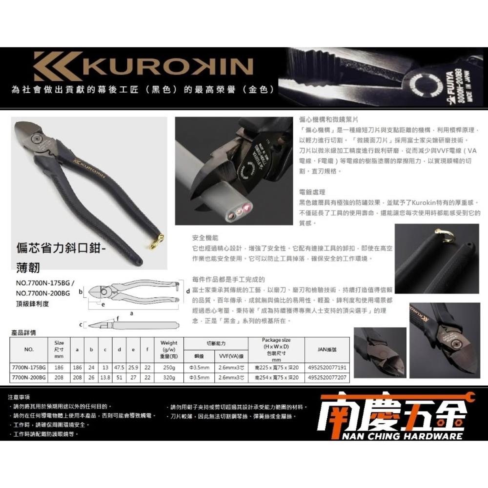 南慶五金 日本 含稅 Fujiya 富士箭-黑金 7700N-175BG 7700N-200BG 強力型斜口鉗-偏芯薄刃