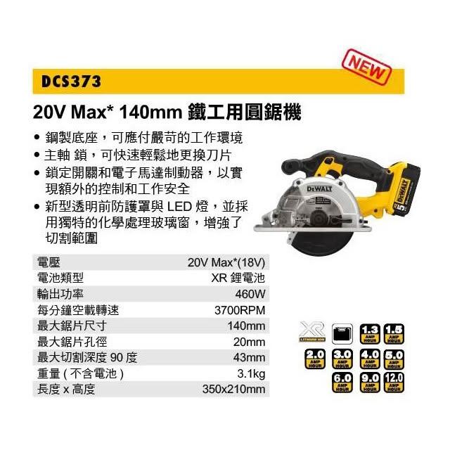 DEWALT 得偉南慶五金 公司貨 含稅 德偉 得偉 DEWALT 20V Max*140mm 鐵工用圓鋸機 DCS373 浪板 線槽