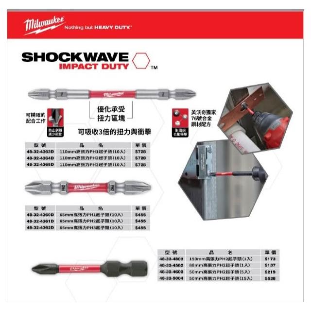 Milwaukee 美沃奇南慶五金 含稅 美沃奇 MILWAUKEE 米沃奇 PH2 65mm 電動起子頭 48-32-4361 4361D
