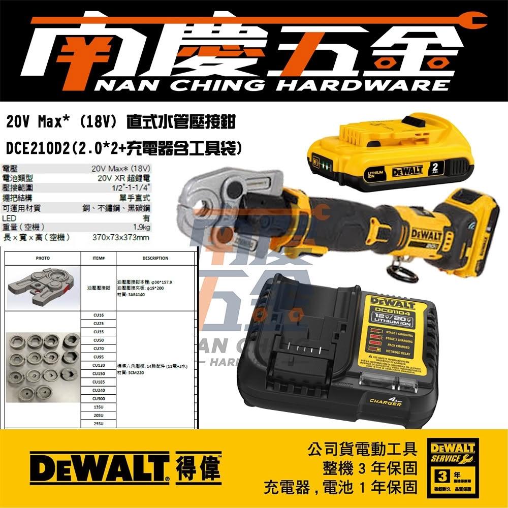 DEWALT 得偉南慶五金 公司貨 含稅 德偉 得偉 DEWALT 20V Max直式水管壓接鉗 DCE210D2 壓電纜壓電線類HCC