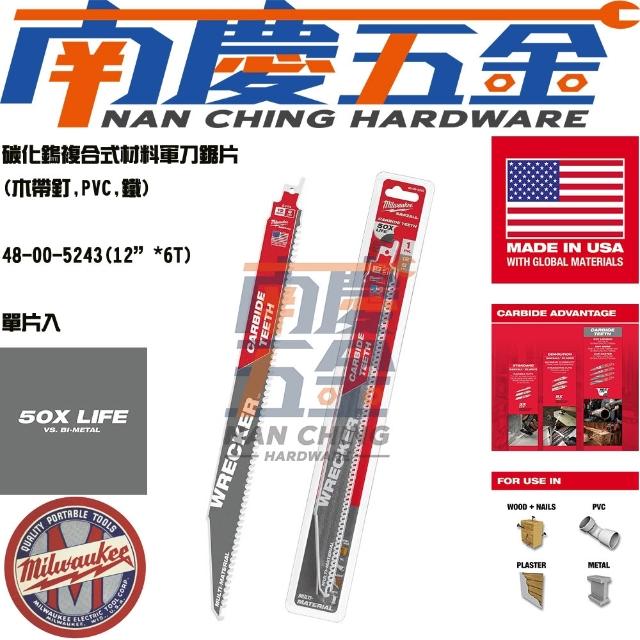 Milwaukee 美沃奇單支入!南慶五金含稅美沃奇Milwaukee五十倍耐用12吋超級鎢鋼多功能硬質合金碳化鎢鋸齒軍刀鋸片48-00-5243