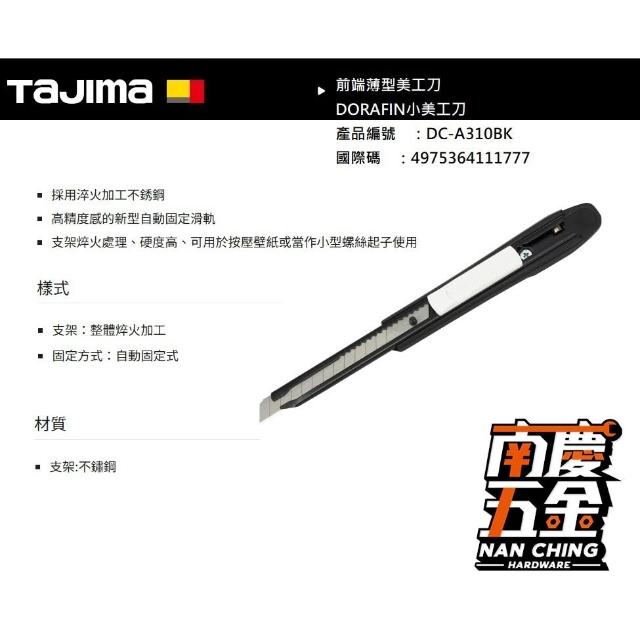 Tajima 田島南慶五金 含稅 日本 田島 TAJIMA DORAFIN30度角美工刀 前端薄型美工刀 小美工刀 DC-A310BK