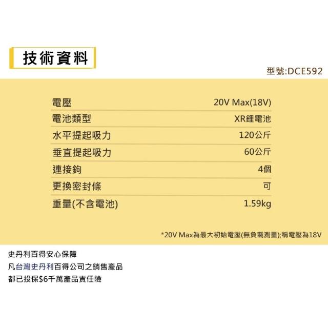 DEWALT 得偉南慶五金 公司貨 含稅 德偉 得偉 DEWALT DCE592B 吸盤 吸木頭 吸鐵 吸玻璃 吸磁磚 承重120KG