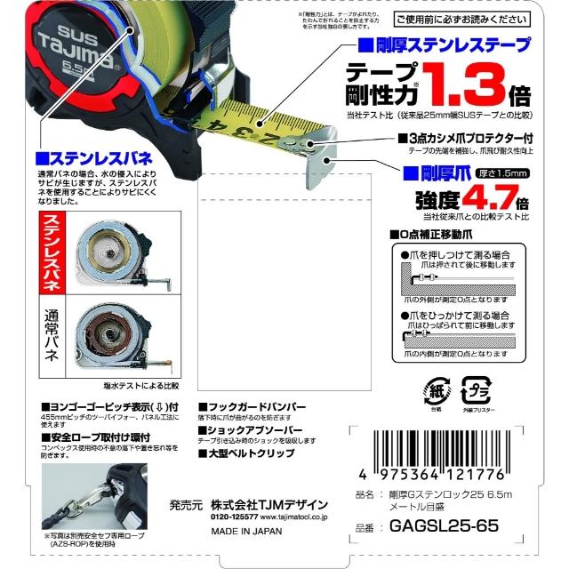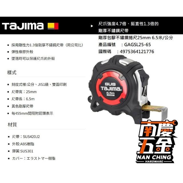 Tajima 田島南慶五金 含稅 日本 田島 TAJIMA 剛厚包膠不鏽鋼捲尺25mm 6.5米/公分 GAGSL25-65