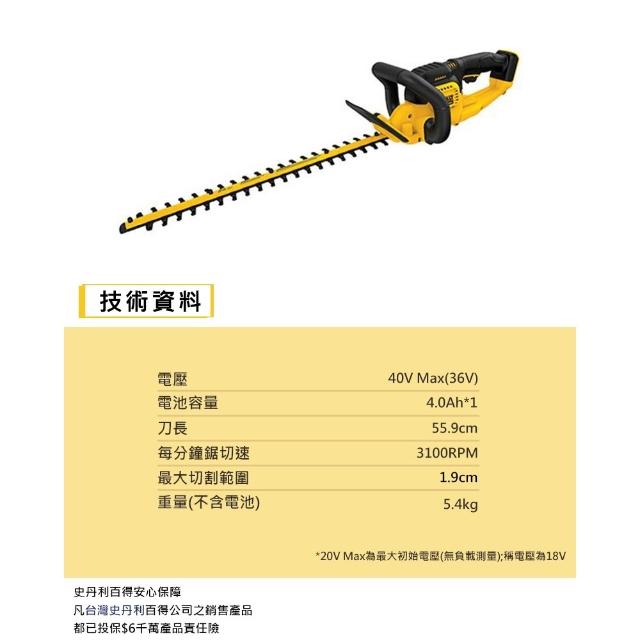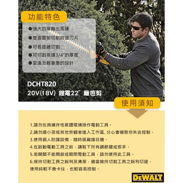 DEWALT 得偉南慶五金 公司貨 含稅 德偉 得偉 DEWALT 20VMax*(18V)鋰電22"籬笆剪 DCHT820P1園藝七里香