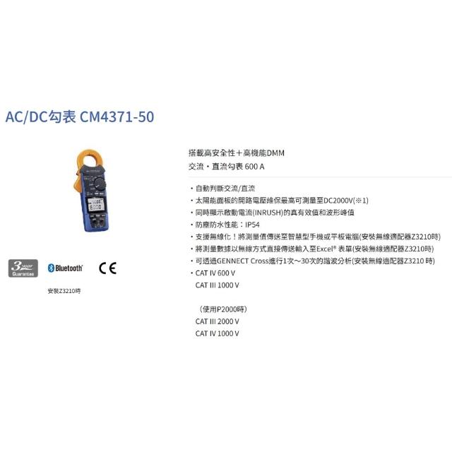 南慶五金 含稅 公司貨 日本製 三年保 HIOKI AC/DC CM4371-50 鉗形表 交直流鉤錶 電表 測量儀器