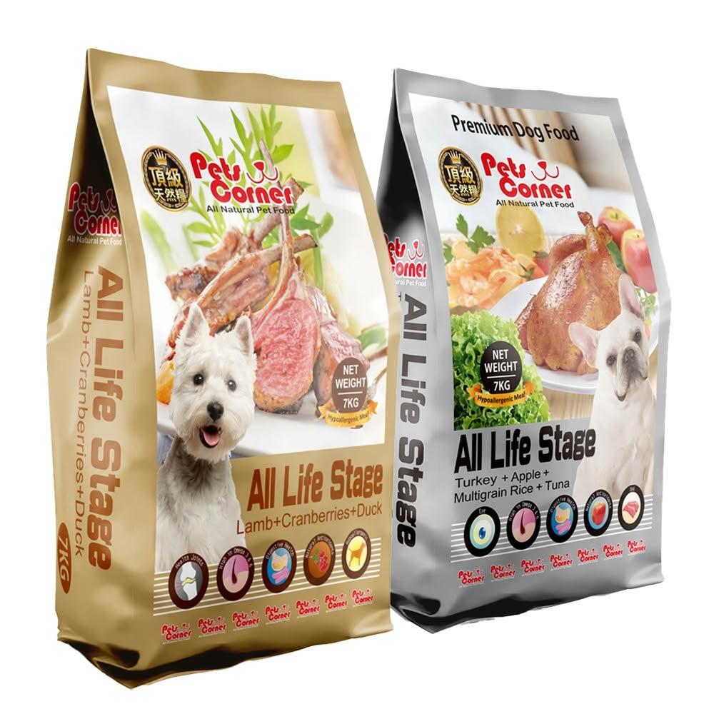 Pets Corner 沛克樂頂級天然犬食7kg (鮮羊肉+蔓越莓+鴨肉 / 火雞肉+蘋果+鮮鮪魚;狗糧/沛克樂/狗乾糧/犬食/狗飼料/沛克樂狗飼料)