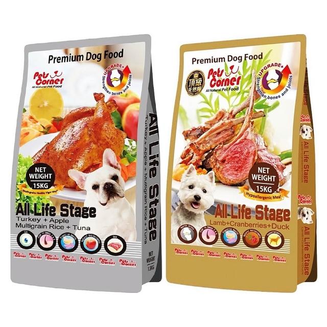 Pets Corner 沛克樂頂級天然犬食15kg (鮮羊肉+蔓越莓+鴨肉 / 火雞肉+蘋果+鮮鮪魚;狗糧/沛克樂/狗乾糧/狗飼料/沛克樂狗飼料)