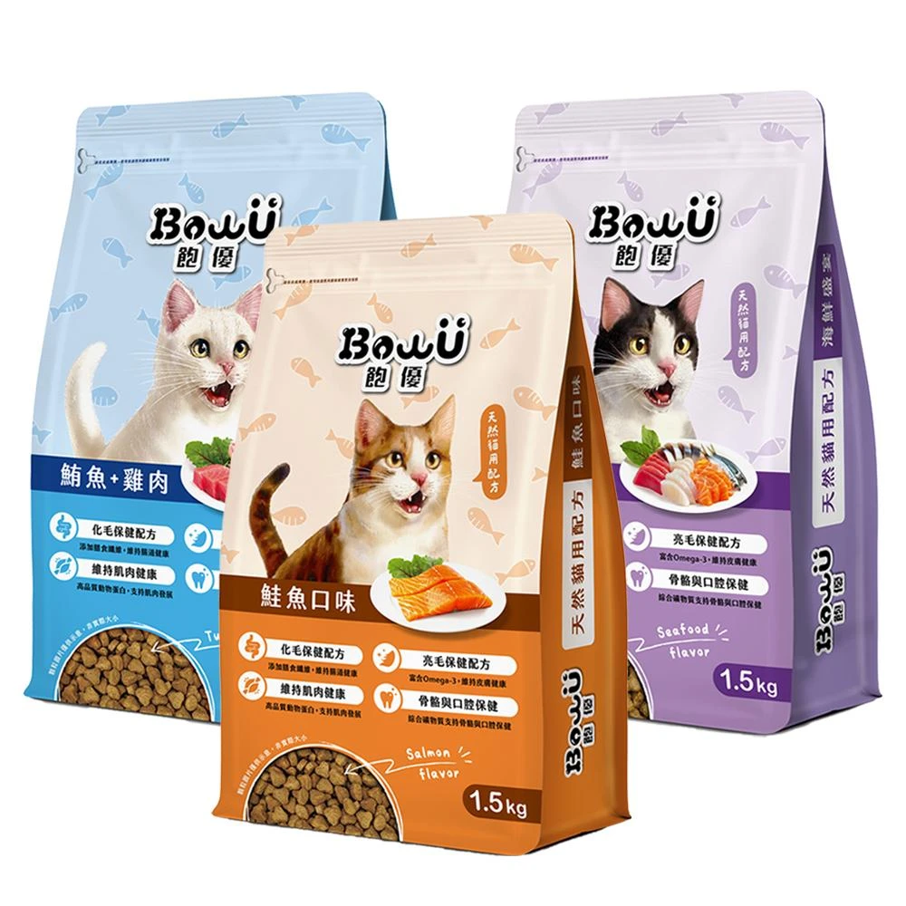 BowU 飽優全方位營養貓食-1.5Kg(鮭魚/鮪魚+雞肉/海鮮盛宴;飽優貓飼料/BowU貓飼料/貓乾糧/貓糧)