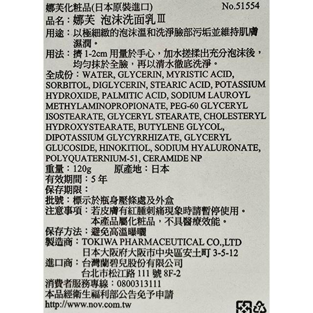 NOV娜芙 泡沫洗面乳Ⅲ 120g 中文標示公司貨 會去除批號 健而美生活廣場
