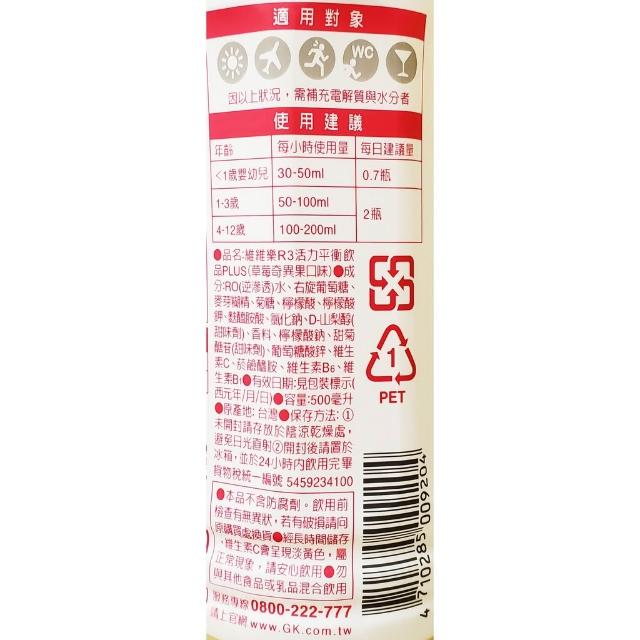 維維樂 R3活力平衡飲品Plus 電解水 500ml 電解質補充 (柚子、蘋果、草莓奇異果) 健而美生活廣場