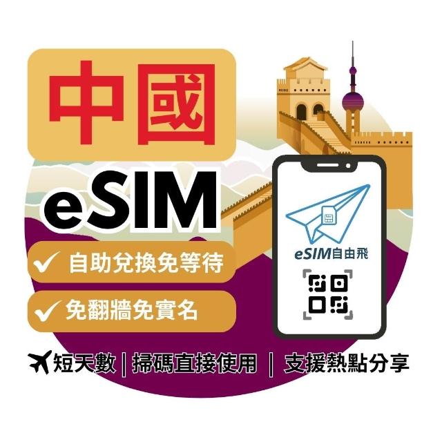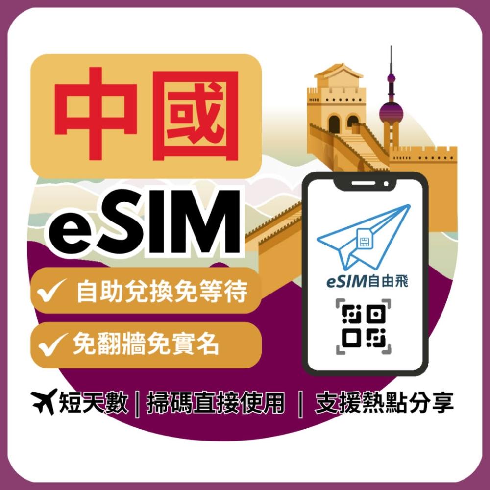 eSIM FlyeSIM自由飛 中國eSIM|免翻牆 24H發貨五分鐘取件 網 北京上海 esim中國【短天數3~10天】