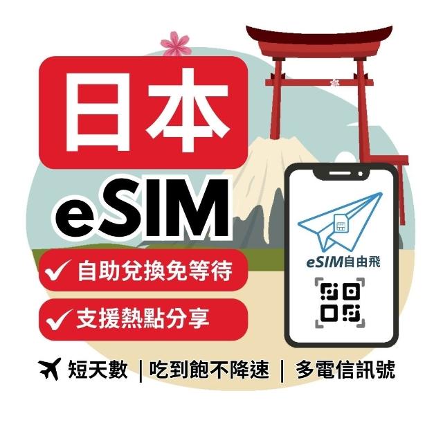 eSIM FlyeSIM自由飛 日本eSIM|原生網路 24H發貨五分鐘取件 網卡 沖繩 北海道 日本esim 吃到飽【短天數3~8天】