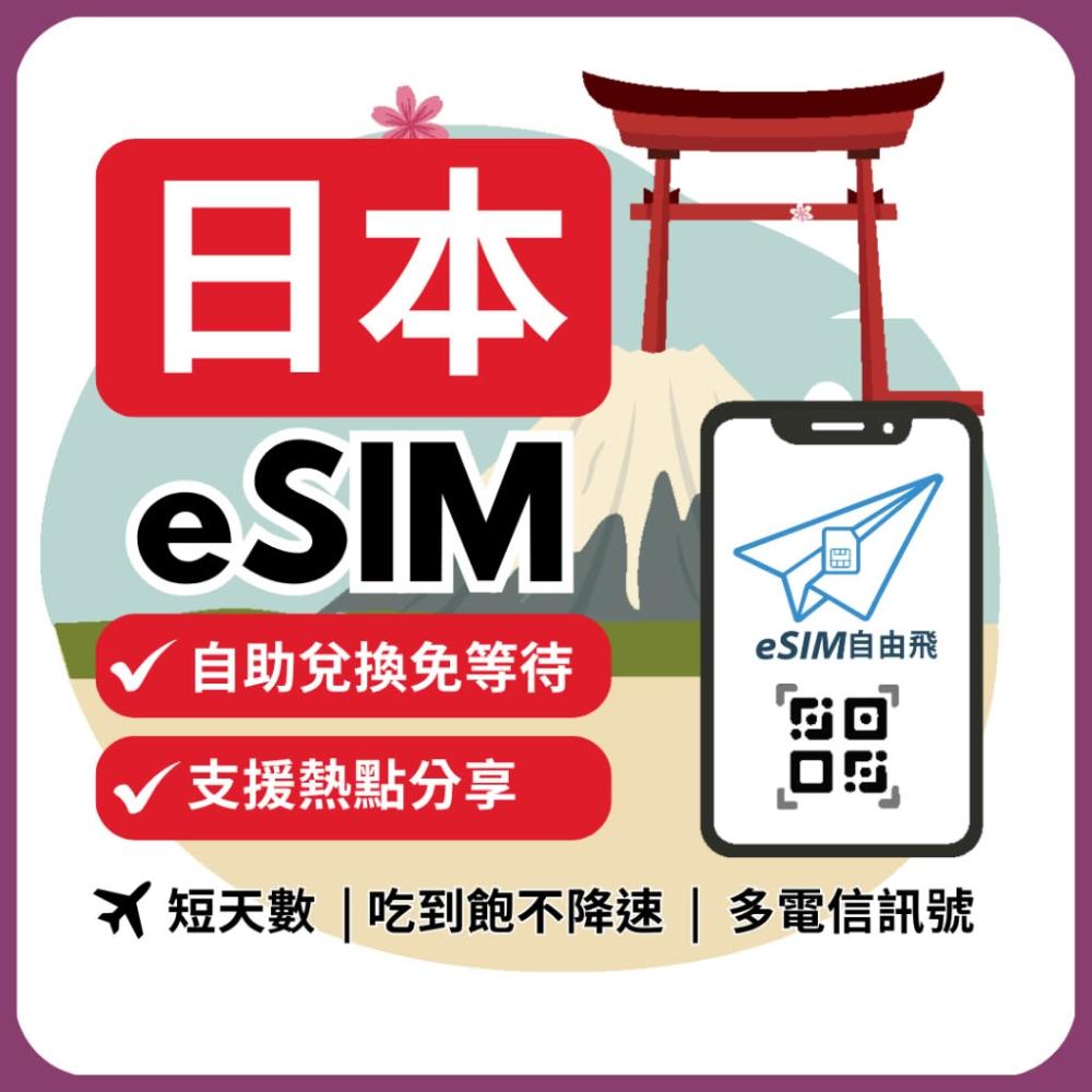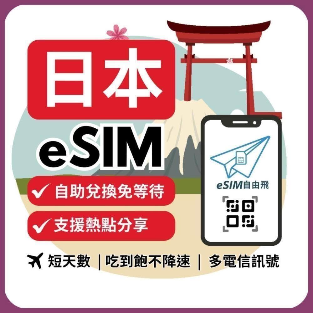 eSIM FlyeSIM自由飛 日本eSIM|原生網路 24H發貨五分鐘取件 網卡 沖繩 北海道 日本esim 吃到飽【短天數3~8天】