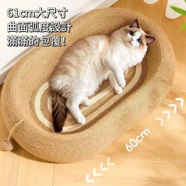 不掉屑貓抓板 橢圓形貓抓板 長61cm 劍麻繩 劍麻貓抓板 超大貓抓板 貓抓板 貓咪貓抓板 麻繩貓抓板 抓板