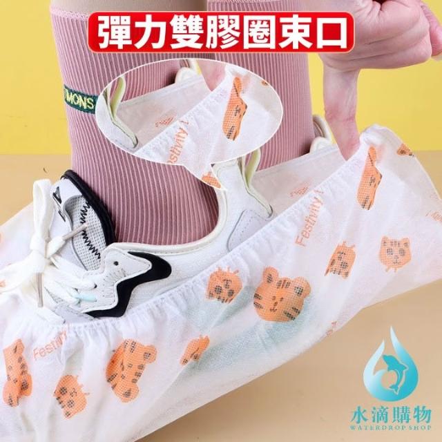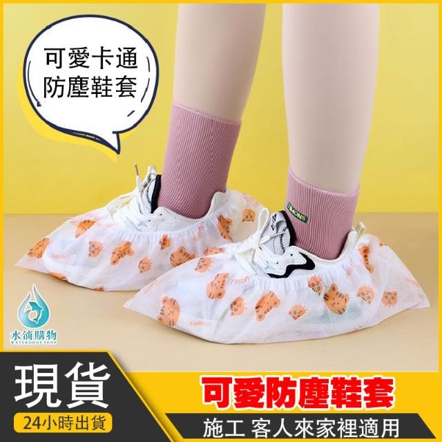 一次性卡通印花鞋套(1入) 無紡布加厚 可愛鞋套 家用防滑 室內一次性腳套 水滴購物