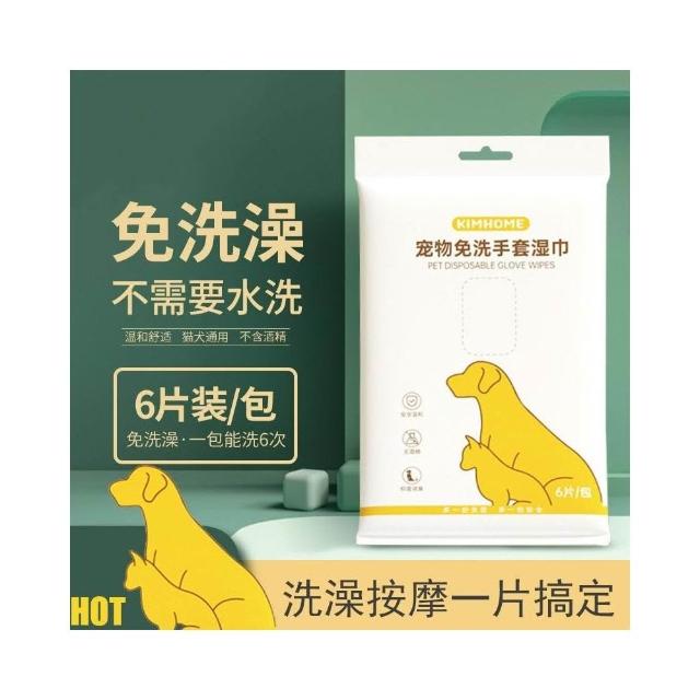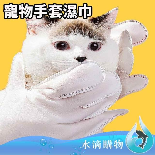 寵物免洗手套狗狗洗澡除臭一次性猫咪清潔乾洗寵物用品6片裝濕巾 水滴購物