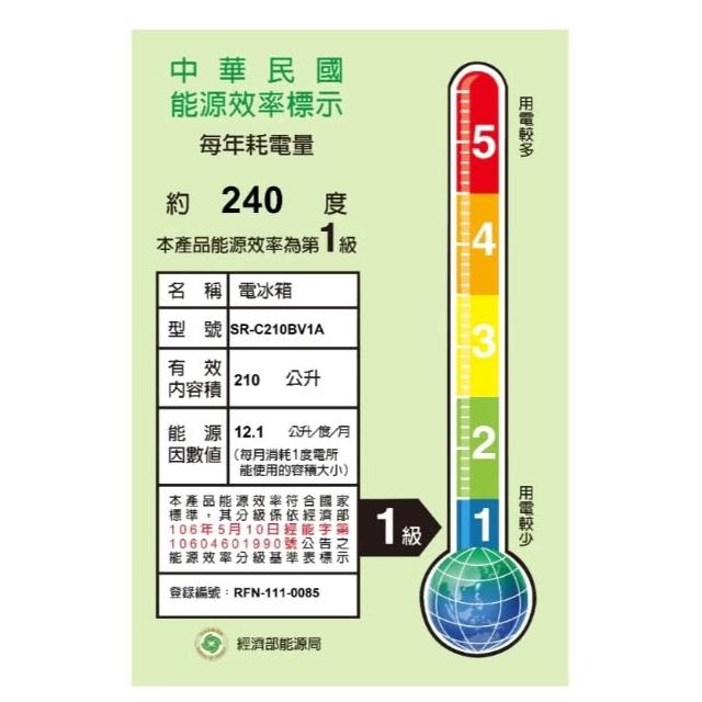 SANLUX 台灣三洋SR-C210BV1A 210公升 一級能效 變頻雙門電冰箱